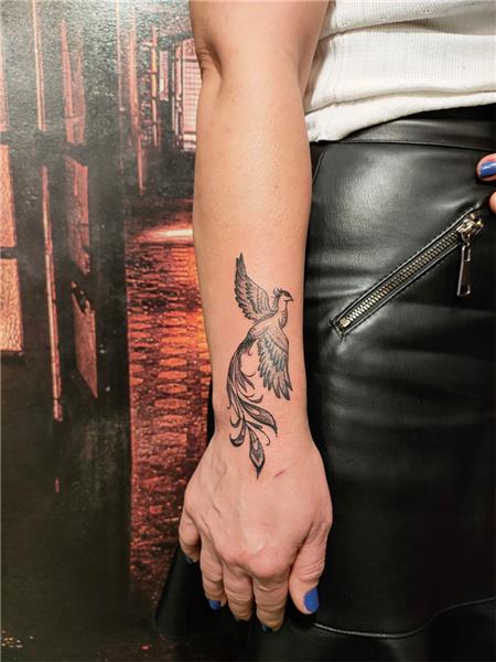 Simurg Zümrüdü Anka Kuşu El Bileği Dövmesi / Phoenix Tattoo on Wrist