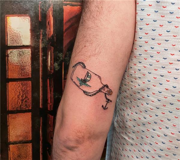 Şişe Yelkenli ve Çapa Dövmesi / Boat in Bottle Tattoo