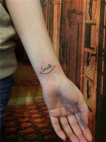 Smile ve Gülen Yüz Dövmesi / Smile Tattoo, Bileğe Yazı Dövmeleri, Mutluluk Dövmeleri, Gülmek Anlamında Dövme, Smiley Tattoo