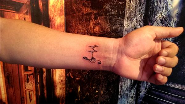 Sol anahtarı ve kalp ritmi kalp atışları kardiyo dövmesi, music is life, Bilek Dövmeleri, Müzik Dövmeleri, G Key Tattoo