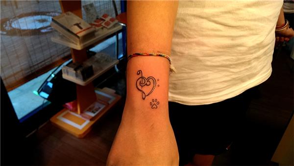 Sol ve Fa Anahtarından Kalp Dövmesi, Pati Dövmesi / G and F key Heart Paw Tattoo, Sol ve Fa Anahtarı Dövmesi, Pati Dövmesi, G and F key tattoo, Bilek Dövmeleri, Minimal Şirin Güzel Dövmeler