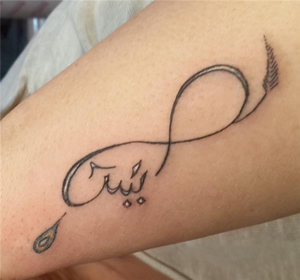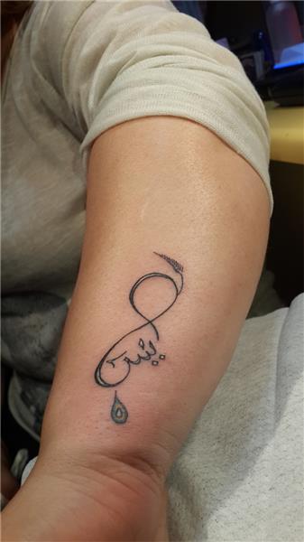 Sonsuzluk içine arapça isim dövmesi, Arapça Yasin Dövmesi, Sonsuzluk ve Nazar Boncuğu Dövmesi, Sonsuzluk İşareti Arapça İsim Nazar Boncuğu Dövmesi / Infinity Arabic Name Amulet Tattoo