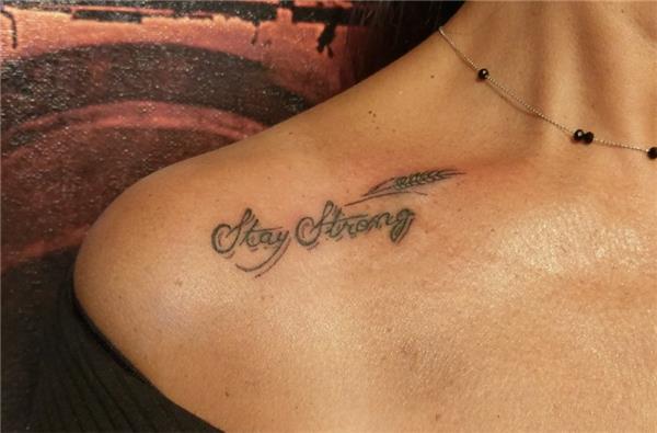 Stay Strong Güçlü Kal Anlamında Gölgeli Yazı Dövmesi ve Başak Motifi