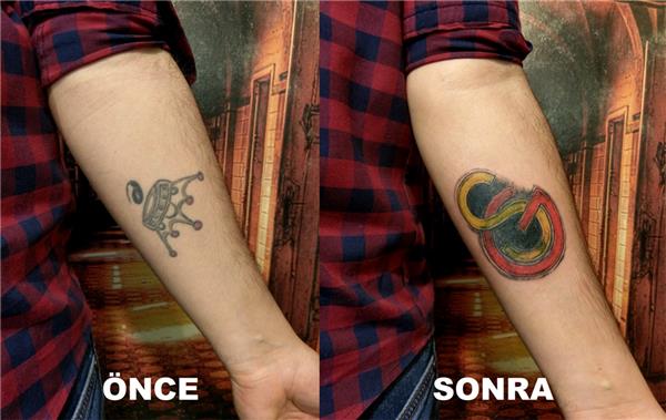 Taç ve Harf Dövmesi Galatasaray Amblemi ile Kapatma Çalışması, Crown and Letter Cover Up Tattoo with Galatasaray Emblem, Dövme Kapatma, Cover Up Tattoo, Galatasaray Dövmesi, Galatasaray Amblem Dövmesi, Kol Dövmesi Kapatma