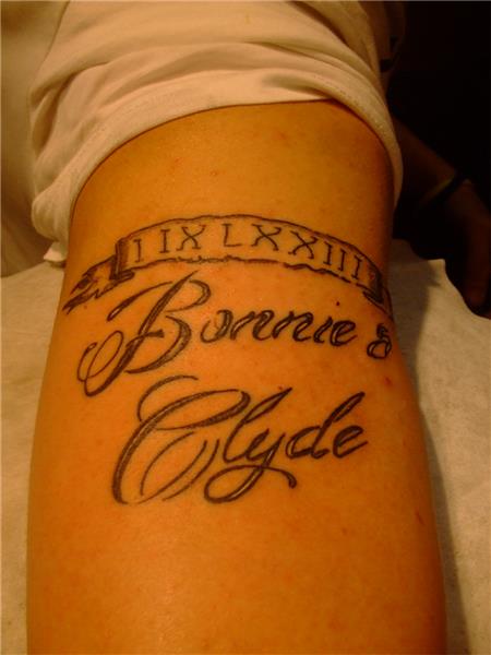 Tarih ve Bonnie and Clyde Yazıd Dövmesi / Date, Bonnie and Clyde Tattoo, Roma Rakamı Tarih Dövmesi, Kuşak içinde tarih dövmesi, Film Dövmeleri, Movie Tattoos, Aile Dövmeleri, Kol Dövmeleri