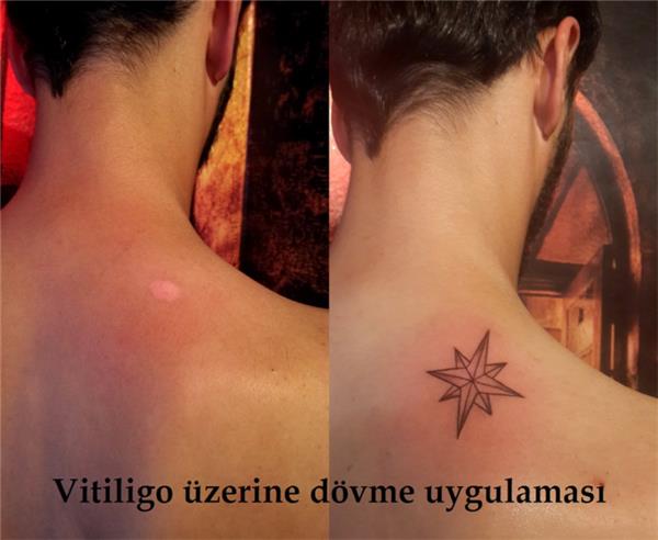 Vitiligo üzerine pusula kutup yıldızı dövmesi, Vitiligo pigment renk kaybı izi üzerine dövme