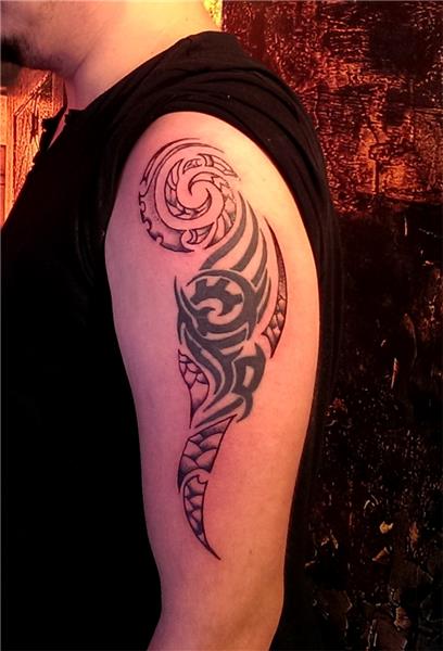 Tribal üzerine ekleme dövme büyütme çalışması maori gölgeli motifler