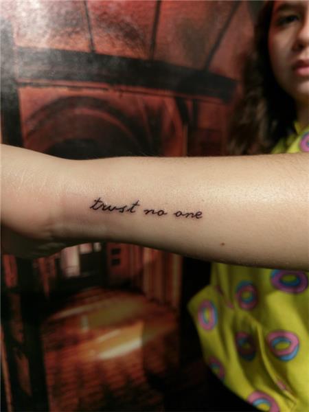 Trust No One Yazı Dövmesi / Trust No One Lana Del Rey Tattoo, Kimseye Güvenme Anlamında Dövme, Bilek Yazı Dövmeleri, Lana Del Rey Dövmesi