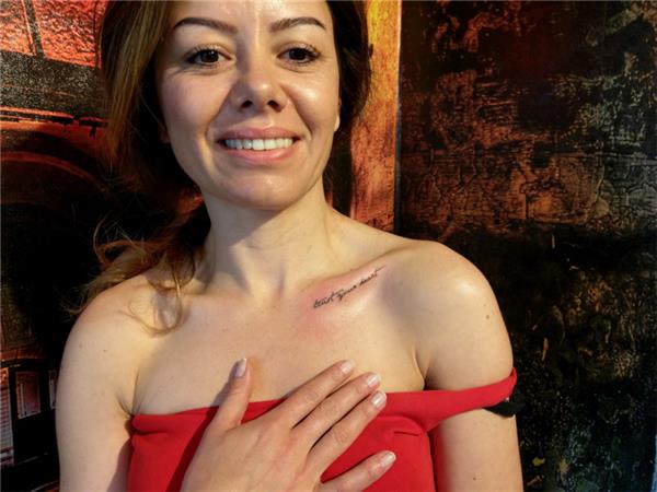 Trust your heart Tattoo Kalbine Güven Yazısı Dövme, Köprücük Kemiği üzerine dövme