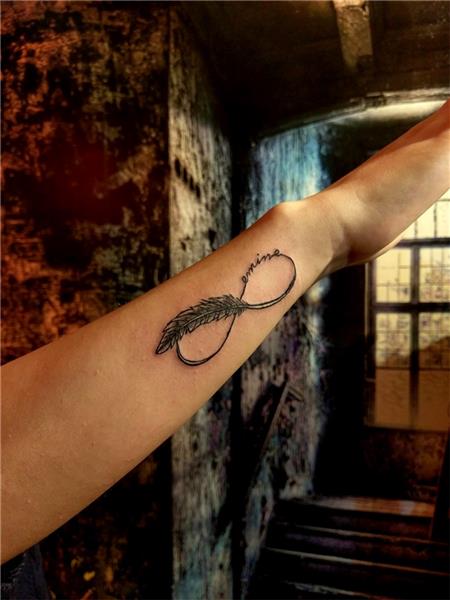 Tüy Sonsuzluk ve İsim Dövmesi / Feather with Infinity Name Tattoo, Sonsuzluk İşareti Dövmeleri, Emine İsim Dövmesi, Tüy Dövmeleri