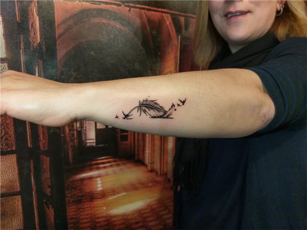 Tüy ve Kuşlar Dövmesi, Feather and Birds Tattoo, Bileğe Tüy Dövmesi, Feather Tattoos, Bird Tattoos, Bileğe Tüy ve Uçan Kuşlar Dövmesi, Feather and Flying Birds Tattoo
