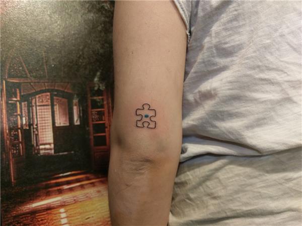 Yap Boz Parçası Mavi Nokta Dövmesi, Puzzle Blue Dot Tattoo, Kol Arkasına Dövme, Puzzle Dövmeleri, Puzzle Tattoos, Mavi Nokta Dövmesi