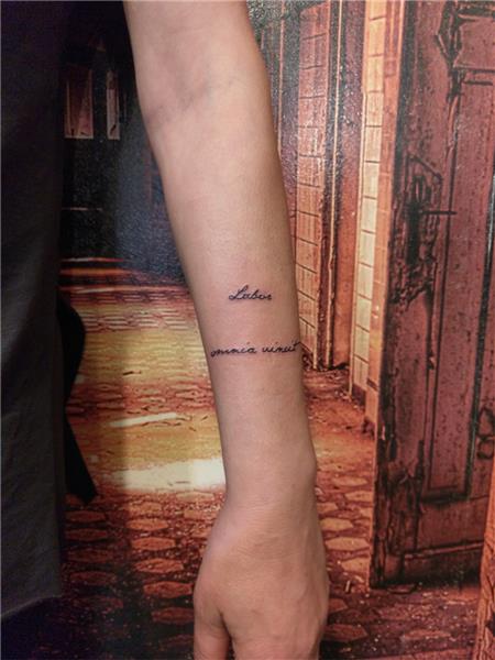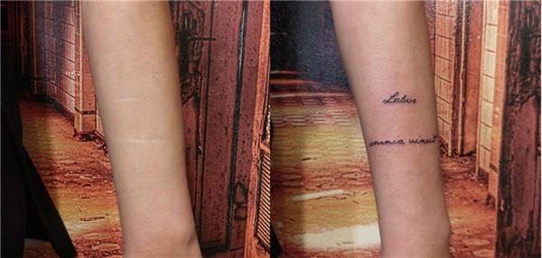 Yara Kesin İzi Üzerine Latince Yazı Dövmesi, Scar Cover Up Tattoo, Labor Omnia Vincit Emek Her Şeyin Üstesinden Gelir anlamında latince deyiş dövmesi, yara izi üzerine dövmeler, kesik izi kapatma dövmesi, yazı dövmeleri, kol dövmeleri