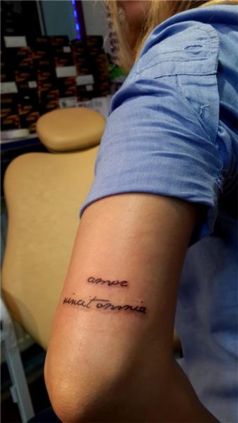 amor vincit omnia yazı söz dövmesi tattoo