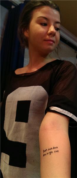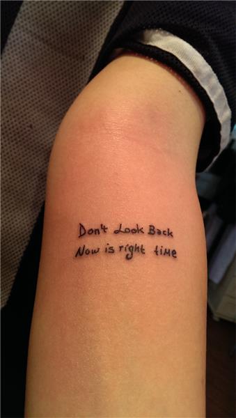 Kendi el yazısı ile Don't look back Now is right time tattoo dövme