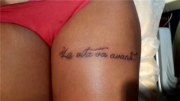 Bacakta İtalyanca Hayat Devam Ediyor Dövmesi la vita va avanti tattoo