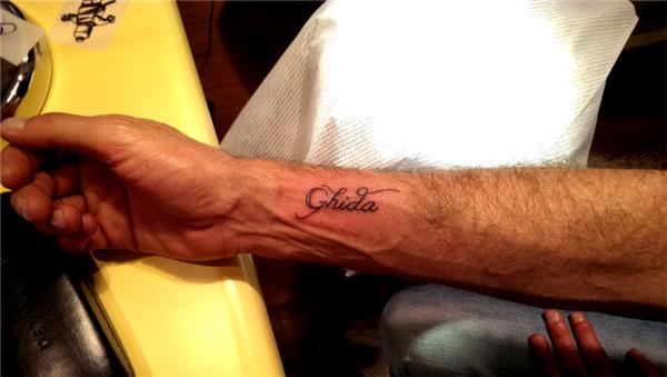 Ghida isim dövmesi, renkli beyaz gölgeli yazı isim dövmeleri