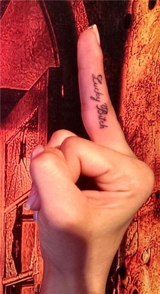 Lucky Bitch Tattoo, Şanslı Hatun Yazı Dövmesi ,Parmak Dövmesi, Finger Tattoo, Orta Parmak Dövmesi, Middle Finger Tattoo