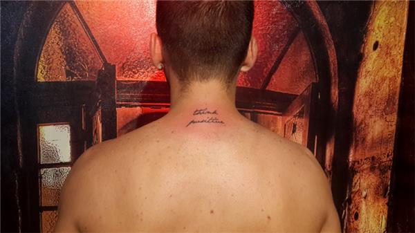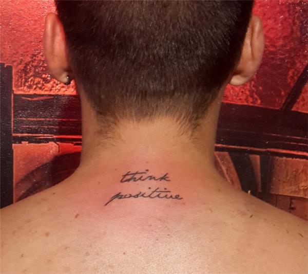 Think Positive Tattoo Enseye yazı dövmesi pozitif düşün dövme