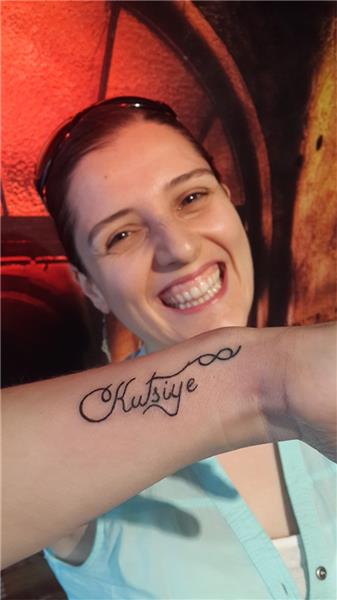 Kutsiye ismi ve sonsuzluk işareti dövmesi