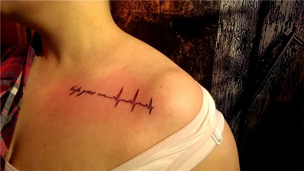 life goes on tattoo dövme yazı ve kardiyo kalp ritmi, hayat devam ediyor dövmesi