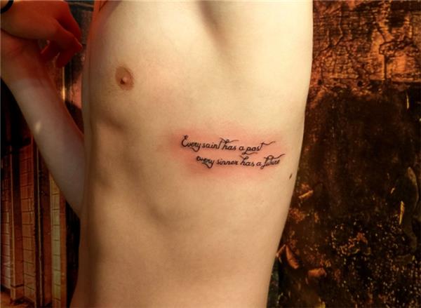 every saint has a past every sinner has a future tattoo, her günahkarın bir geleceği her azizin bir geçmişi vardır. Yazı güzel sözler dövme