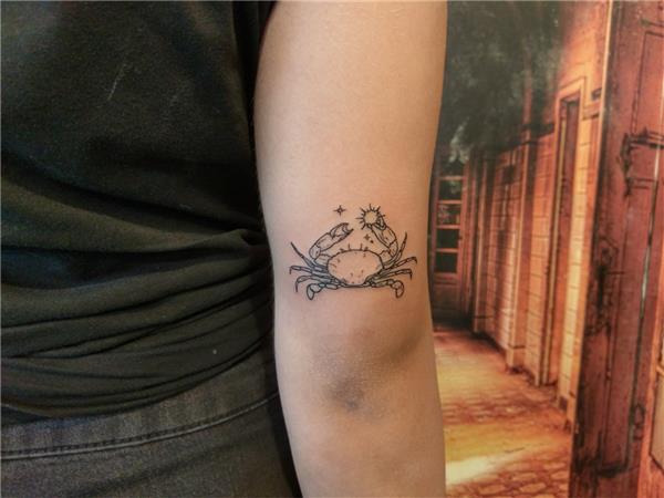 Yengeç Dövmesi, Crab Tattoo, Kol Arkasına Dövme, Yengeç Burcu Dövmesi, Cancer Crab Tattoos, Horoscope Tattoos, Burç Dövmeleri, Yengeç Motifi Dövmesi, Yengeç Güneş ve Yıldızlar Dövmesi