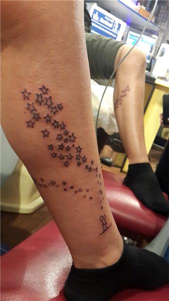 Yıldızlar ve çöp adamlar bacak dövmesi, Stars and Stickman Tattoo