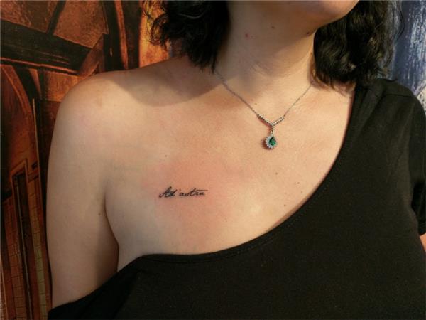 Omuza Latince Yazı Dövmesi / Latin Word Tattoo on Shoulder, Omuz Dövmeleri, Yazı Dövmeleri, Latince Deyişler Dövmesi, Yıldızlara Doğru Anlamında Latince Ad Astra Dövmesi, Ad Astra Tattoo, Göğüs Üzerine Dövme
